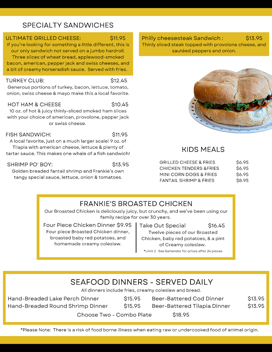 Located at 2218 Indiana Ave in Sheboygan, WI, Frankie's Pub & Grill stands out for its vibrant atmosphere and delicious American fare. Customers rave about the substantial portions and rich flavors that define the menu. Signature dishes include mouthwatering burgers and hearty sandwiches, with standout reviews highlighting the burger's deliciousness and the tender, flavorful steak sandwich.