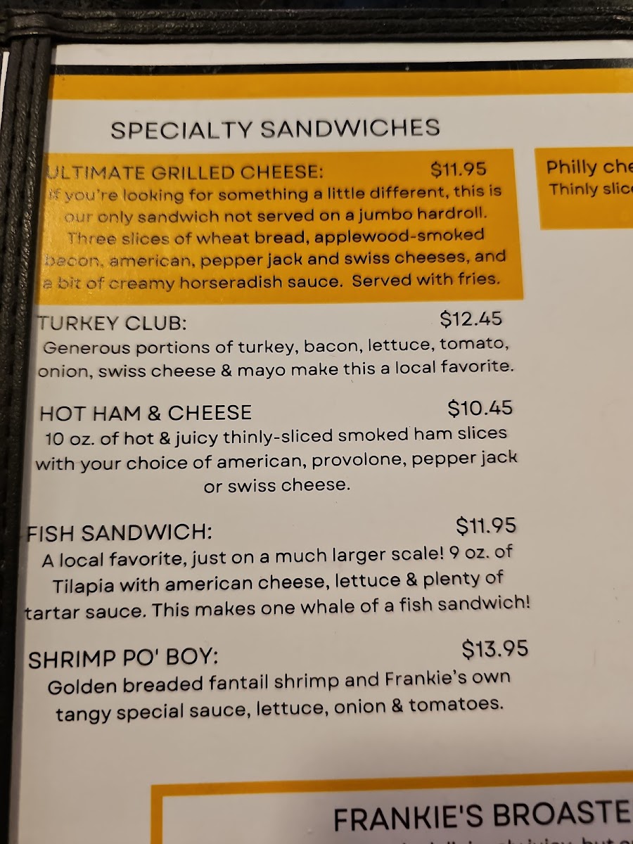 Frankie's strikes a balance between casual dining and quality food, making it a perfect pit stop for locals and travelers alike. Friendly staff and efficient service only enhance the positive dining experience, making every visit memorable.